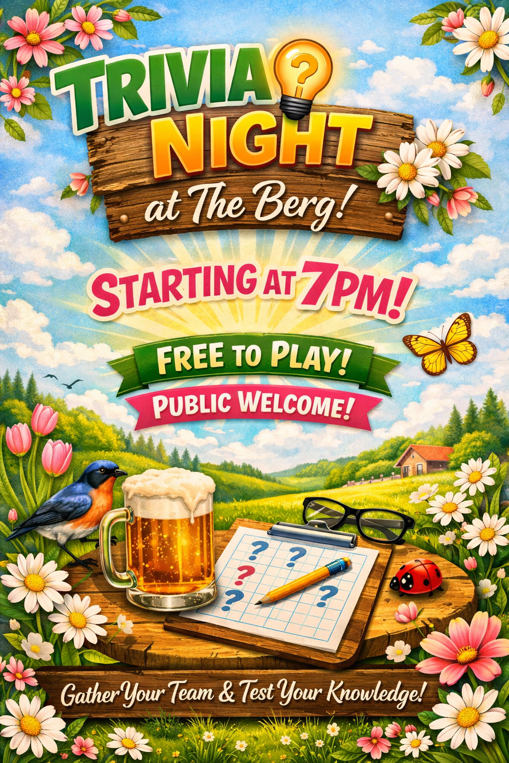 Thursday Night is Trivia Night at the Berg. Come out and test your Skills against our Trivia Master, this all starts at 7PM and you