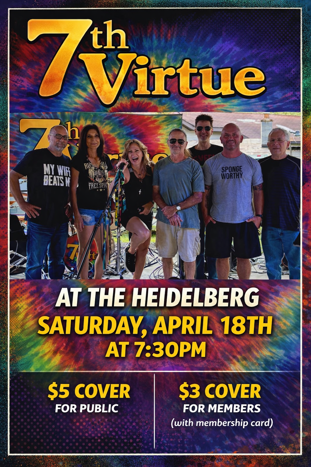 ROCK THE NIGHT AWAY! Feel the beat, Join the fun! Join us this Saturday the 18th at 7:30PM. 7th Virtue will be at the club.