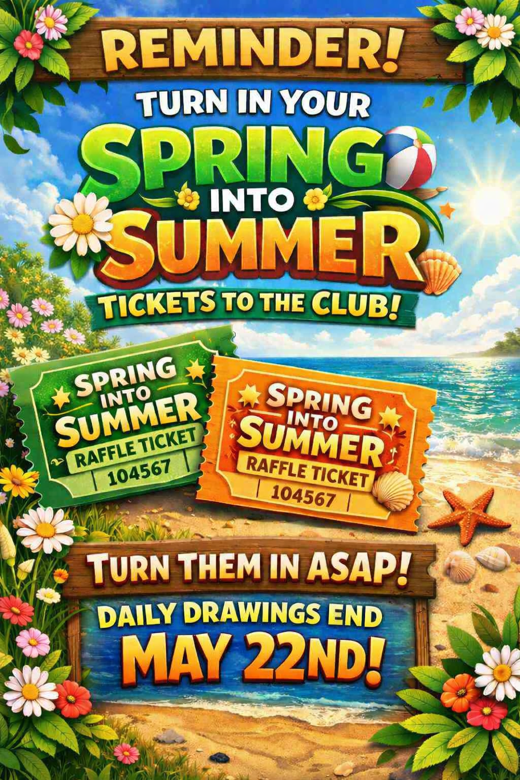 TICKET WINNERS FOR APRIL 6-10th 4/6 - #4494 - J. Frye 4/7 - #4892 - A. Lechner 4/8 - #2379 -C. Baker 4/9 - #4819